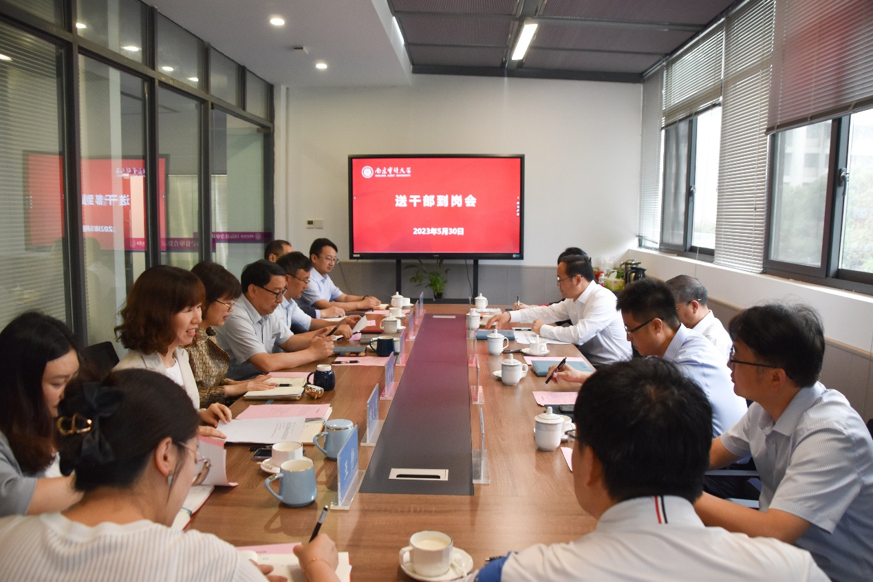 5月30日,国际学院召开送干部到岗会,党委副书记俞安平,党委常委、副校长李乾文,党委常委、组织部部长陈祖华,商学院党委书记公彦德,外国语学院党总支书记钱永红,国际学院班子成员出席。会议由学院副院长张文秀主持。