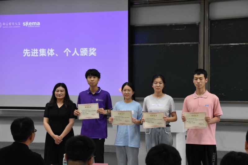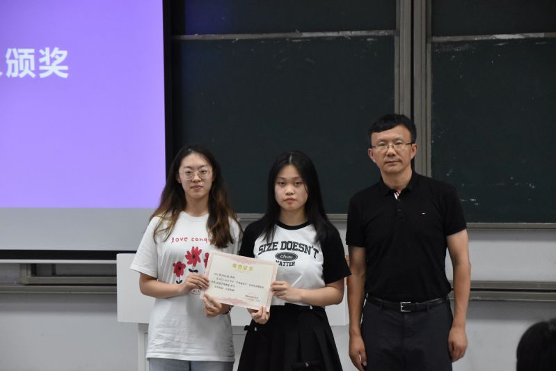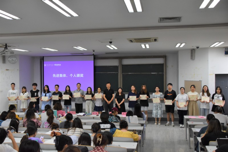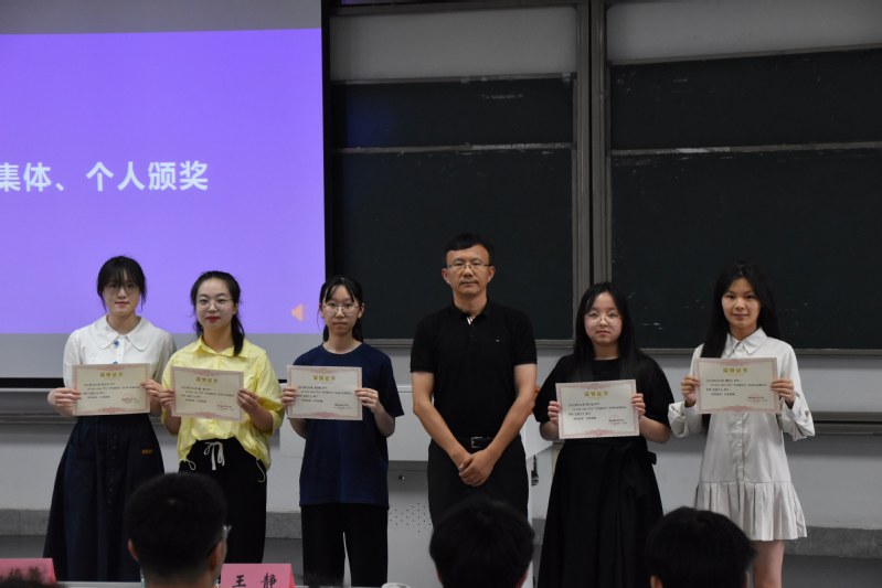 江振春和王静为获奖集体和个人颁奖,并对暑期社会实践提要求。