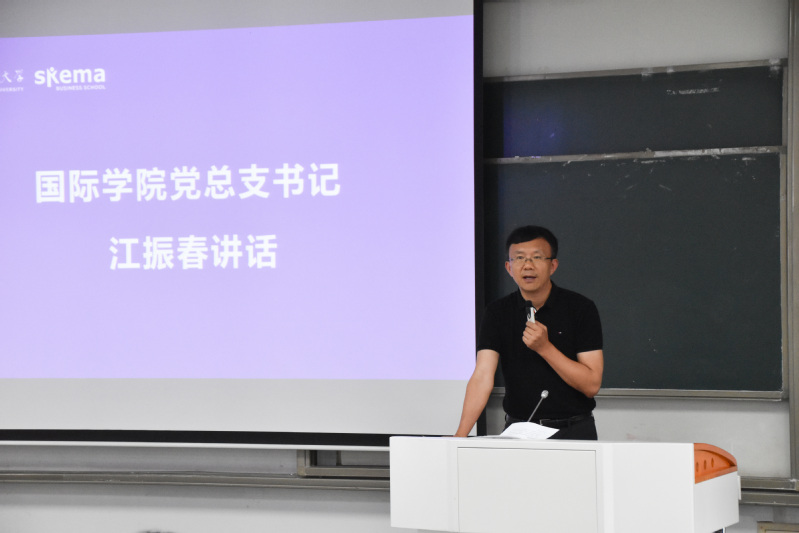 最后,江振春发表暑期动员讲话,他分析了国内外考研和升学的形势,希望同学们用好大学期间最后一个暑假,精准定位、明确目标、发挥优势、蓄能奋发,在冲刺阶段跑出好成绩。