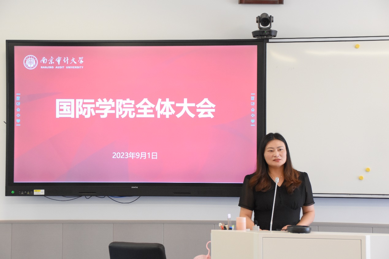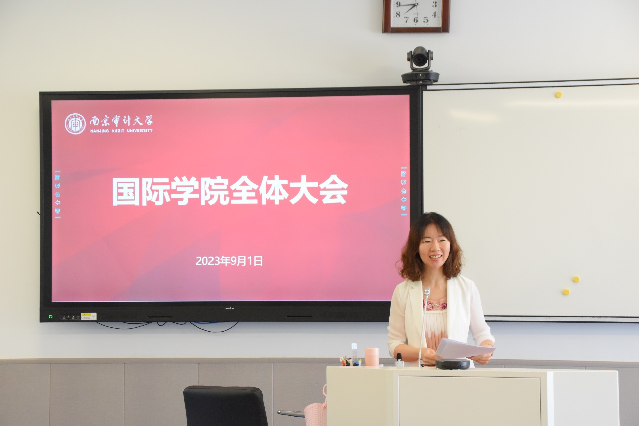 副院长(主持)张文秀汇报了学院暑期工作成果,传达了学校中层干部大会精神,并布置了近期工作。她指出,贯彻落实习总书记重要回信精神,提升国际化教育水平,迎接新学期的挑战,需要全体教职工共同努力。