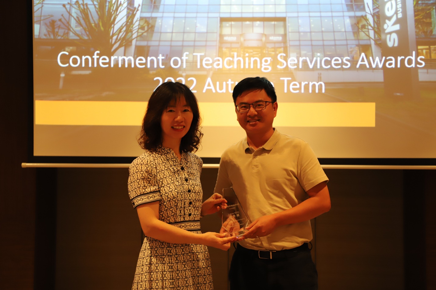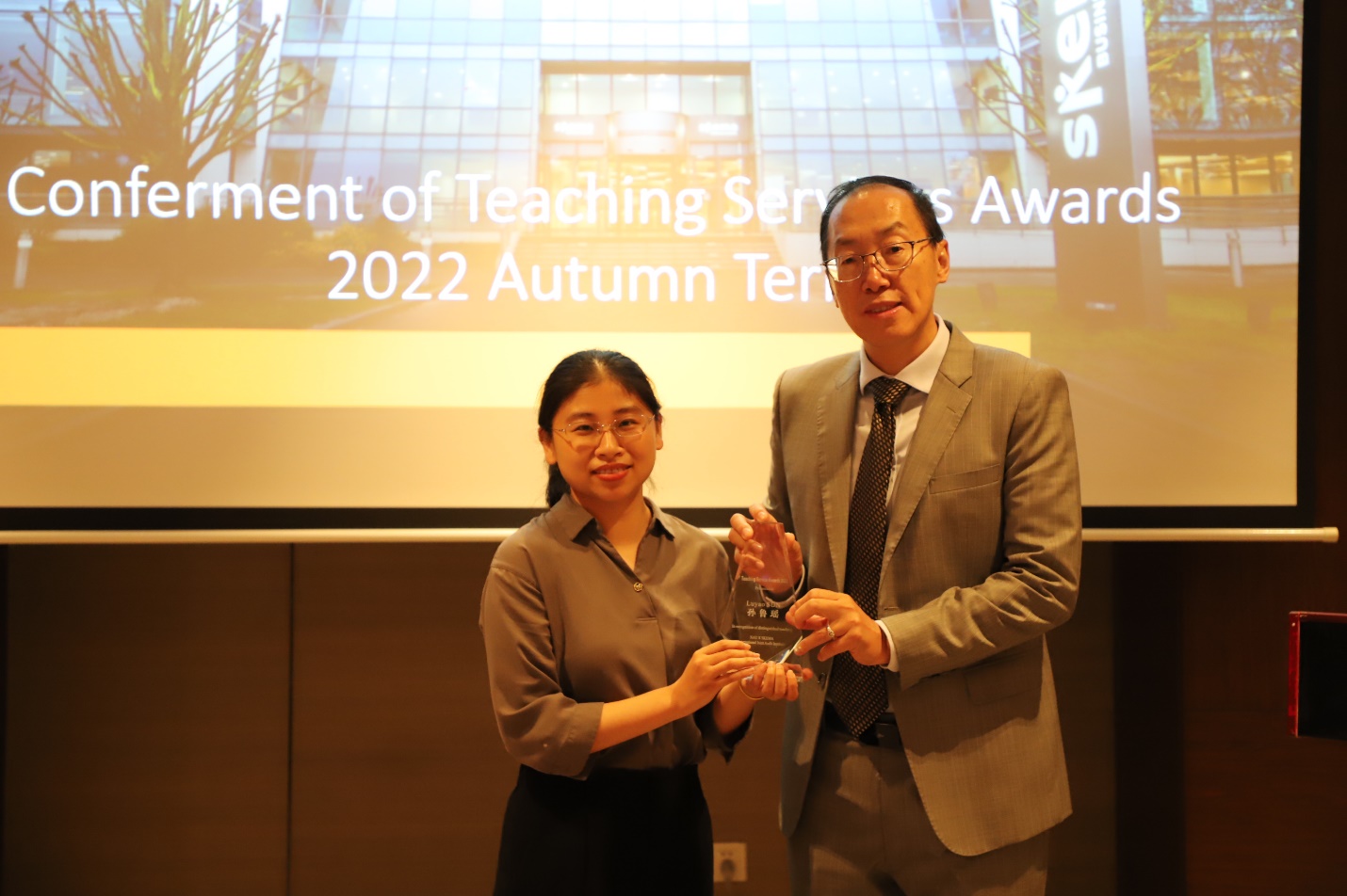 最后,学院为上一学年表现突出的三位教师进行了表彰和颁奖。国际联合审计学院的教务团队一直为教师工作提供强大支撑,激励教师为探索更加国际化、专业化的教学体系而不断努力。