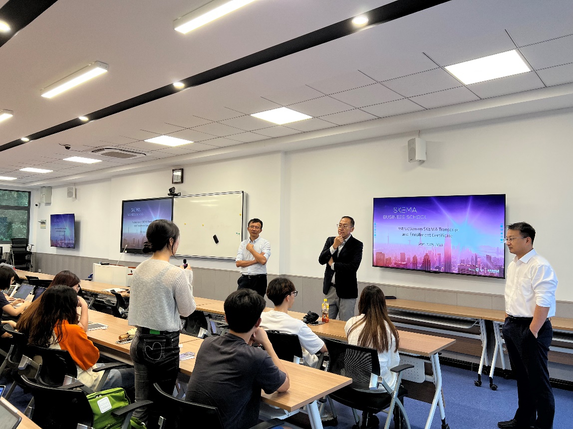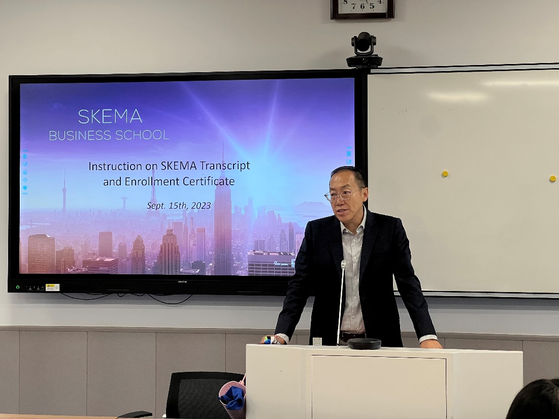 窦文宇展示了法国Skema商学院成绩单及在读证明,讲解了法方成绩构成与申请材料获取方式,为学生材料准备提供多样、便利的途径。