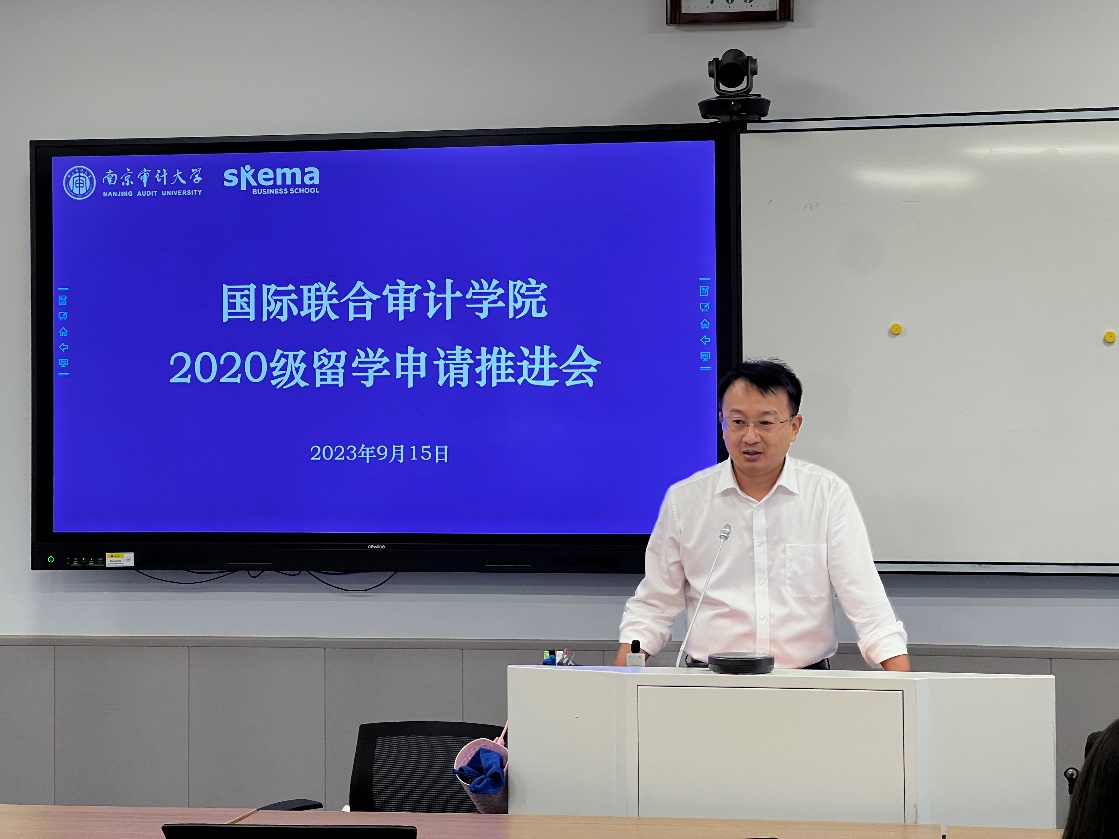 为了给有意出国深造的2020级学生提供更多升学指导与支持,海外院校申请季来临之际,国际联合审计学院于9月15日下午在A201教室召开2020级留学申请推进会,就学生留学申请中关心的问题进行集中解答。国际联合审计学院党总支书记江振春、法方副院长窦文宇、中方副院长李庭燎、教务刘莉、刘静、雷昕昊及2020级有关学生共70余人参加会议,会议由副院长李庭燎主持。