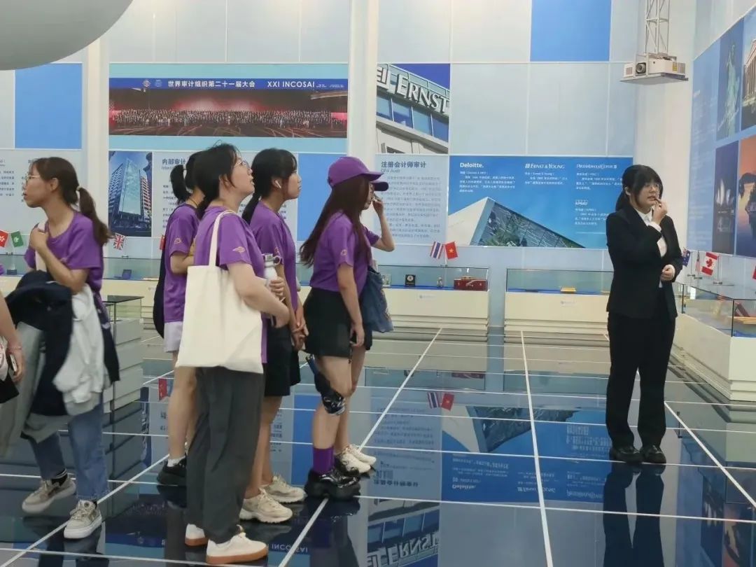 第二部分是世界审计经纬,这里陈列着各国审计长、外国友人赠送的礼物,展示了中国审计逐步走向世界舞台的历程。走过高大的“审”字墙,中国审计史的一幅幅画卷映入眼帘。从西周到春秋,由秦朝过渡到汉朝,到唐宋元明清的更迭,再到近代,民国以及革命根据地的出现,我们第一次了解到了审计的历史源远流长。当讲解员说到长征途中战士们不顾危险依然携带审计资料时,同学们都为之感慨。最后,通过红色审计专题参观,无论是汶川地震中赈灾物资的审计,还是常规的社会经济活动,财政资金流到哪,审计就跟踪到哪儿。同学们的职业使命感油然而生。