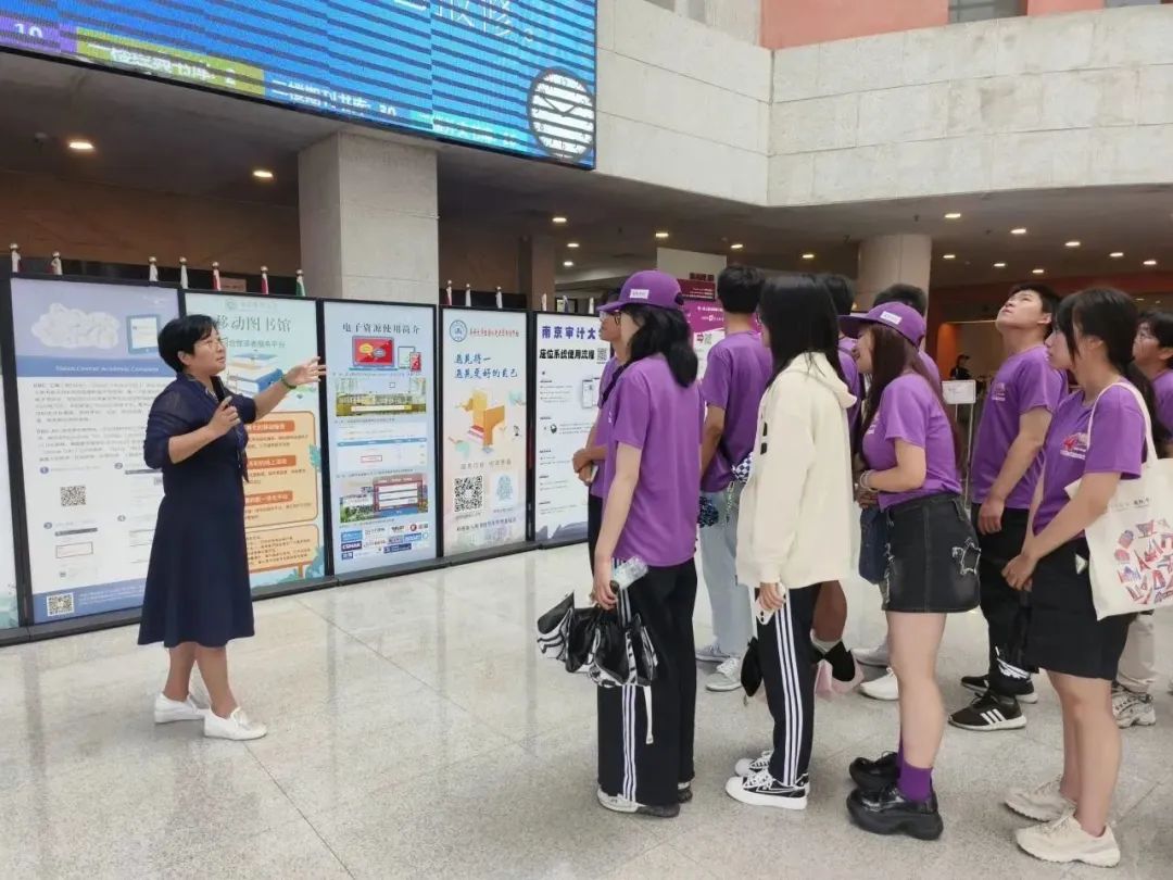 图书馆不愧是我校标志性建筑,既气势恢宏又书香典雅。同学们进入一楼大厅,正当同学们对于图书馆充满好奇之时,我们的成长导师——老馆长王丽琳老师已经来到了同学们身边。她从图书馆的另外一个名字——“得一”的内涵谈起,向同学们介绍了我校图书馆的空间布局、馆藏情况和特色亮点,还具体讲述了学生自主研发的订座系统。接着,她带领同学们走过方形水池,介绍了其“天圆地方”的设计理念,其意义是为告诉南审学子,处事要圆滑温和,做人要方正有度,给初入学校的大一新生们上了重要的一课。最后,她还介绍了图书馆内各楼层阅览室、咖啡厅、货币馆、石艺馆的分布情况,以及图书馆每年举办的读书节、真人图书等品牌读书活动。王丽琳老师娓娓道来,如数家珍,给同学们留下了深刻的印象。