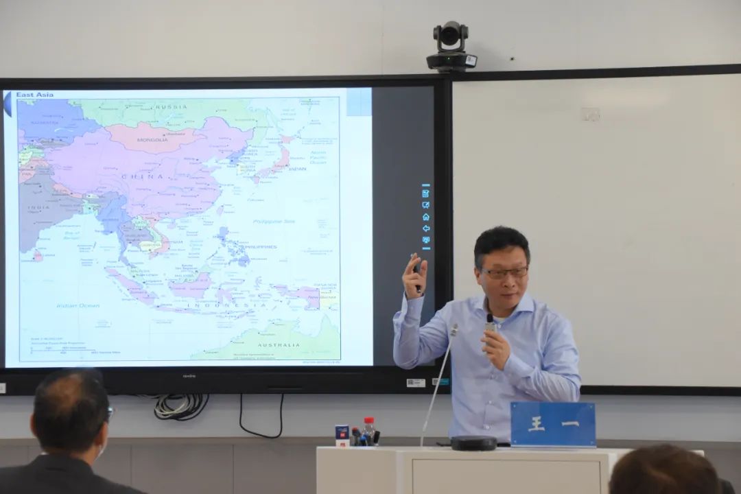 交换生和国际学院的学生就讲座内容向王一提问,王一博士耐心讲解有关在中国经济发展的问题。