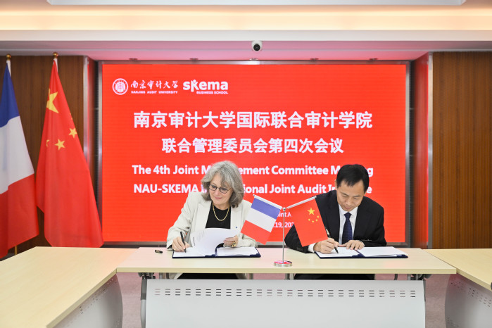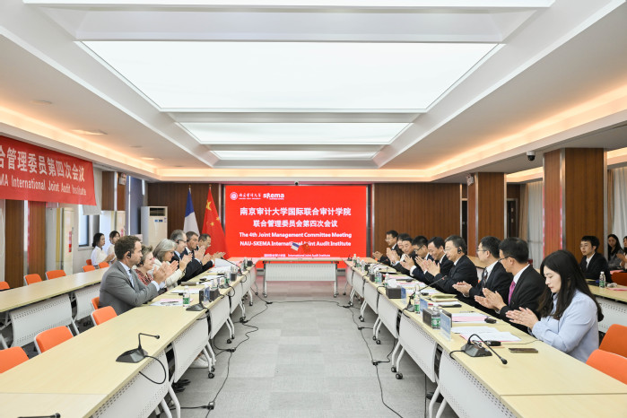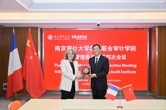 2023年10月19日,UG环球360官方网站国际联合审计学院联合管理委员会第四次会议顺利召开。联合管理委员会主任、UG环球360官方网站校长董必荣,联合管理委员会副主任、法国SKEMA商学院校长Alice Guilhon(爱丽丝·居隆),联合管理委员会中方全体委员、法方委员代表参加会议,法国SKEMA商学院领导,国际联合审计学院领导班子及师生代表列席会议。本次会议由联合管理委员会委员、UG环球360官方网站副校长李乾文主持。