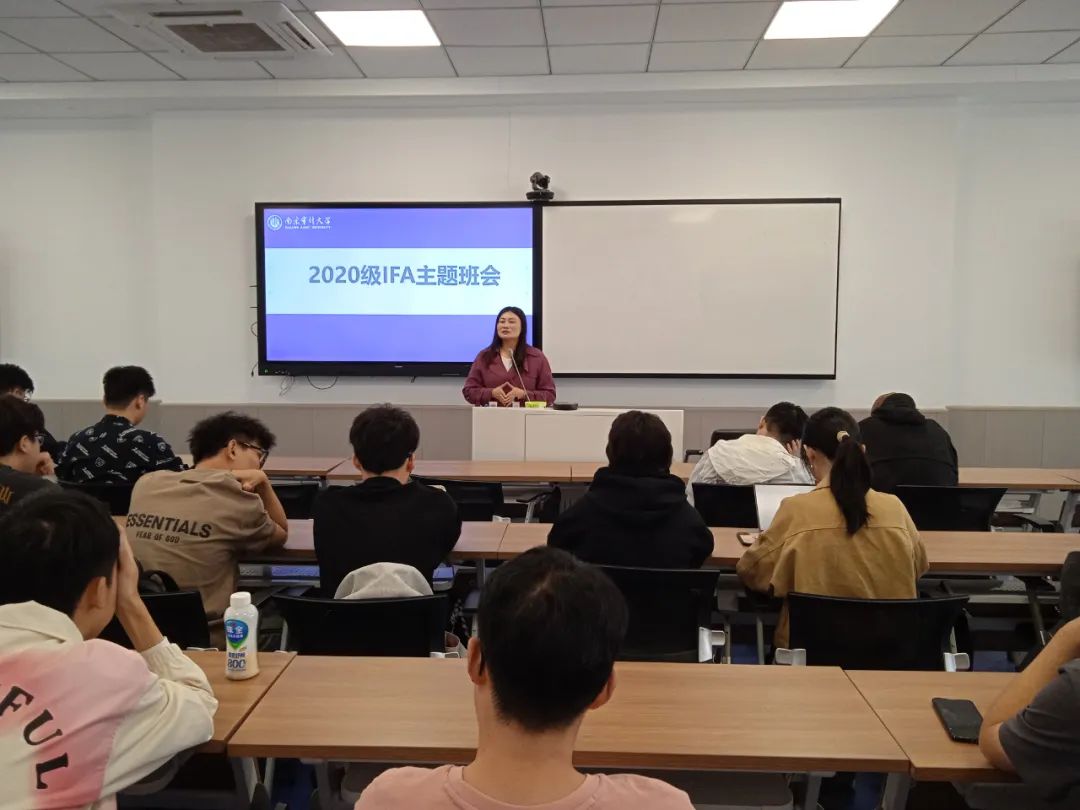 10月23日,国际联合审计学院为2020级IFA、IBA两个专业的学生召开升学考研主题班会,20级IFA、IBA专业全体学生参加。副书记、副院长王静、副院长李庭燎介绍升学考研情况。