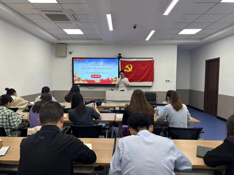 为进一步推进学习贯彻习近平新时代中国特色社会主义思想主题教育走深走实,国际学院第二学生党支部于11月3日召开党支部主题学习会进行集体学习。党员们深入学习了习近平主席在第三届“一带一路”国际合作高峰论坛开幕式上的主旨演讲,声明及双边会晤主要内容。国际学院第二学生党支部共14名党员参加,会议由郭欣然主持。