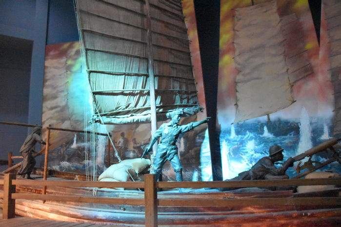 纪念馆的“镇馆之宝”,是一条完整的渡江木船,长13米、宽约2米。船桨、船帆、缆绳全都保存完好,但战火与时光早已在船身上烙下了不可磨灭的斑驳痕迹。这艘小船作为国家一级文物,生动地展现了中国革命斗争的艰苦与伟大。
