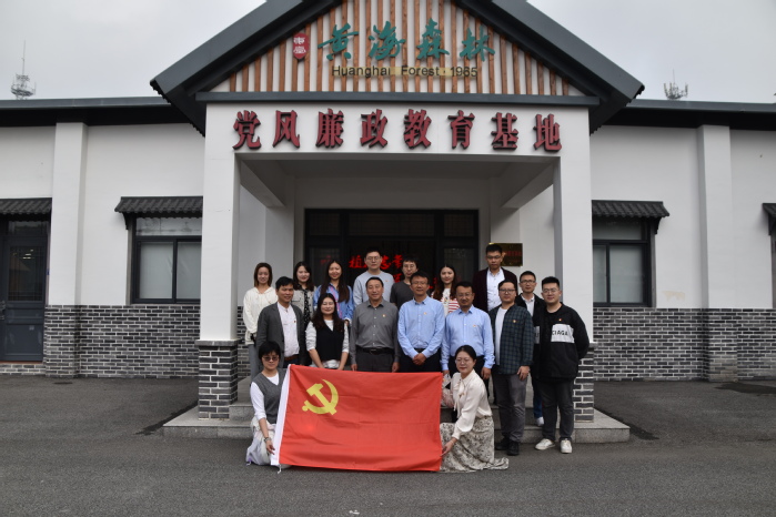 全体党员教师首先参观了黄海森林廉政教育基地。20世纪60年代,黄海森林公园所在的这片土地还是一片盐碱地,从东台县到东台市,从东台林场到黄海森林公园,通过一代代林场人矢志不渝、艰苦创业的奋斗,建成了如今的莽莽林海,催生了“农垦文化”“干校文化”和“廉洁文化”,弘扬了黄海林工“讲纪律,守规矩,无怨无悔跟党走”“重品行,作表率, 敢叫荒滩变绿洲”“促改革,强担当,坚守绿色不动摇”的时代精神。