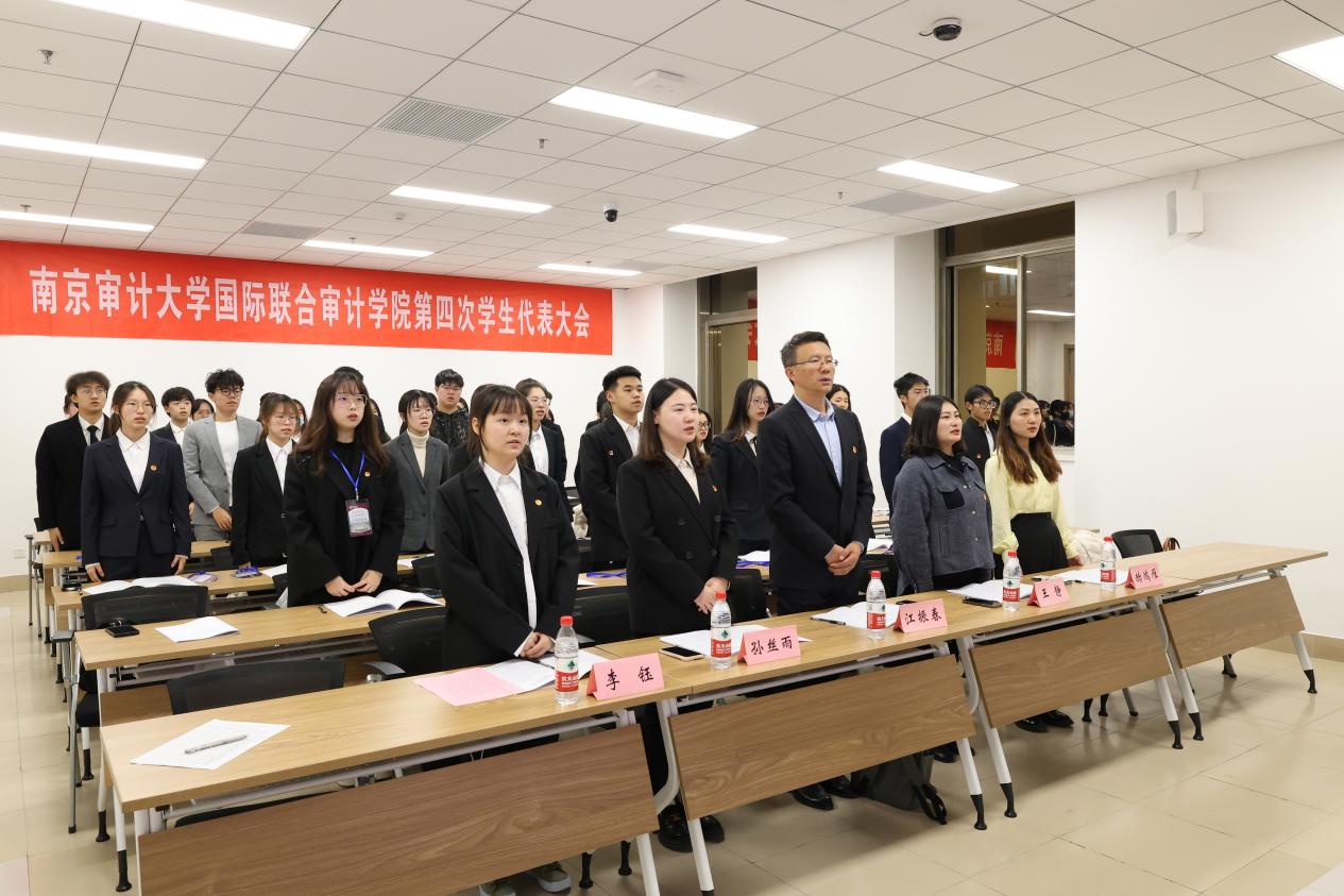 18时30分,国际联合审计学院第四次学生代表大会正式会议开始,全体参会成员起立,奏唱《中华人民共和国国歌》。