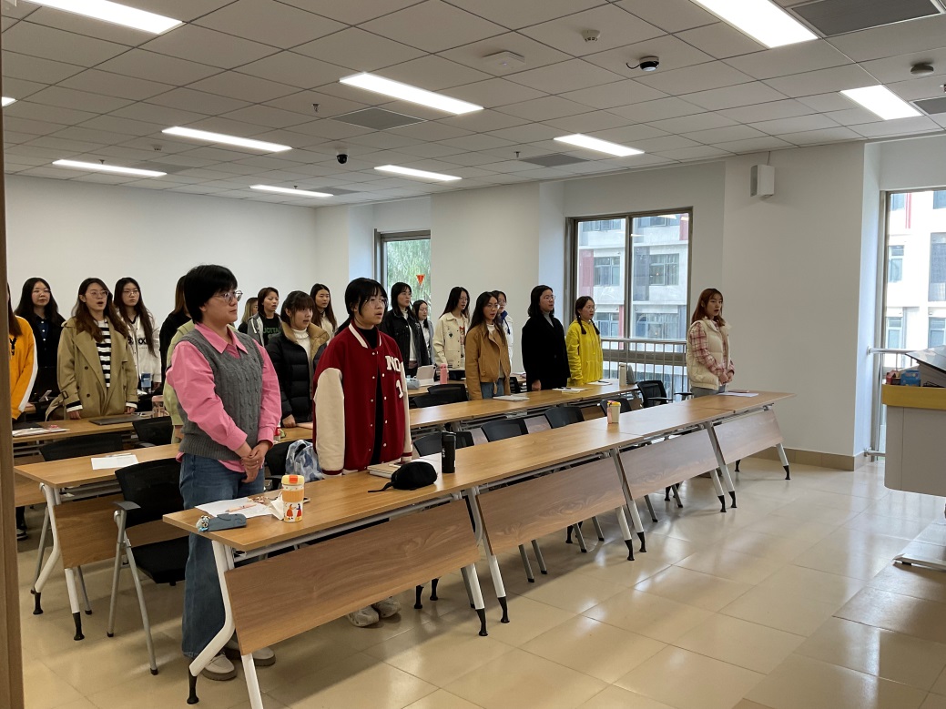 接着,上一期分党校优秀学员代表张梓萱发言。她分享了自己在上一期分党校学习中的收获,并对发展对象提出三点建议。第一,要认真聆听每一节党课,并做好笔记,自觉强化党性修养;第二,要积极参与党支部的各项支部活动以及课外实践,增强作为青年党员的责任感和使命感;第三,要时刻树立主动学习的思想,积极向党组织靠近,课余时间可以使用学习强国、半月谈、人民日报等app阅读一些时事政治和党团知识。