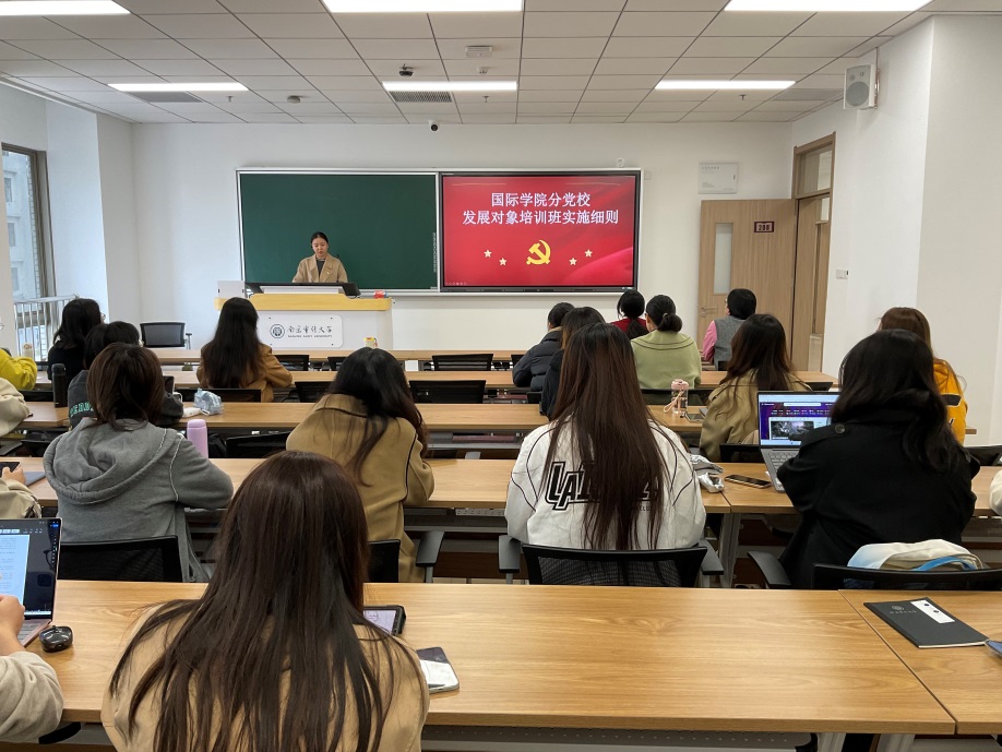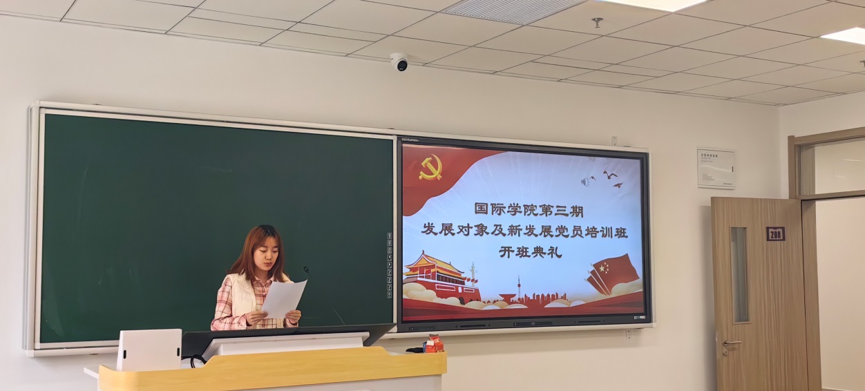 11月22日下午14:30,国际学院第三期发展对象及新发展党员培训班开班典礼在综合楼208教室举行。参加本次开班典礼的有国际联合审计学院第一学生党支部书记、国际学院兼职组织员张莹玥老师,国际联合审计学院第二学生党支部书记尹曦老师,本期发展对象和新发展党员。