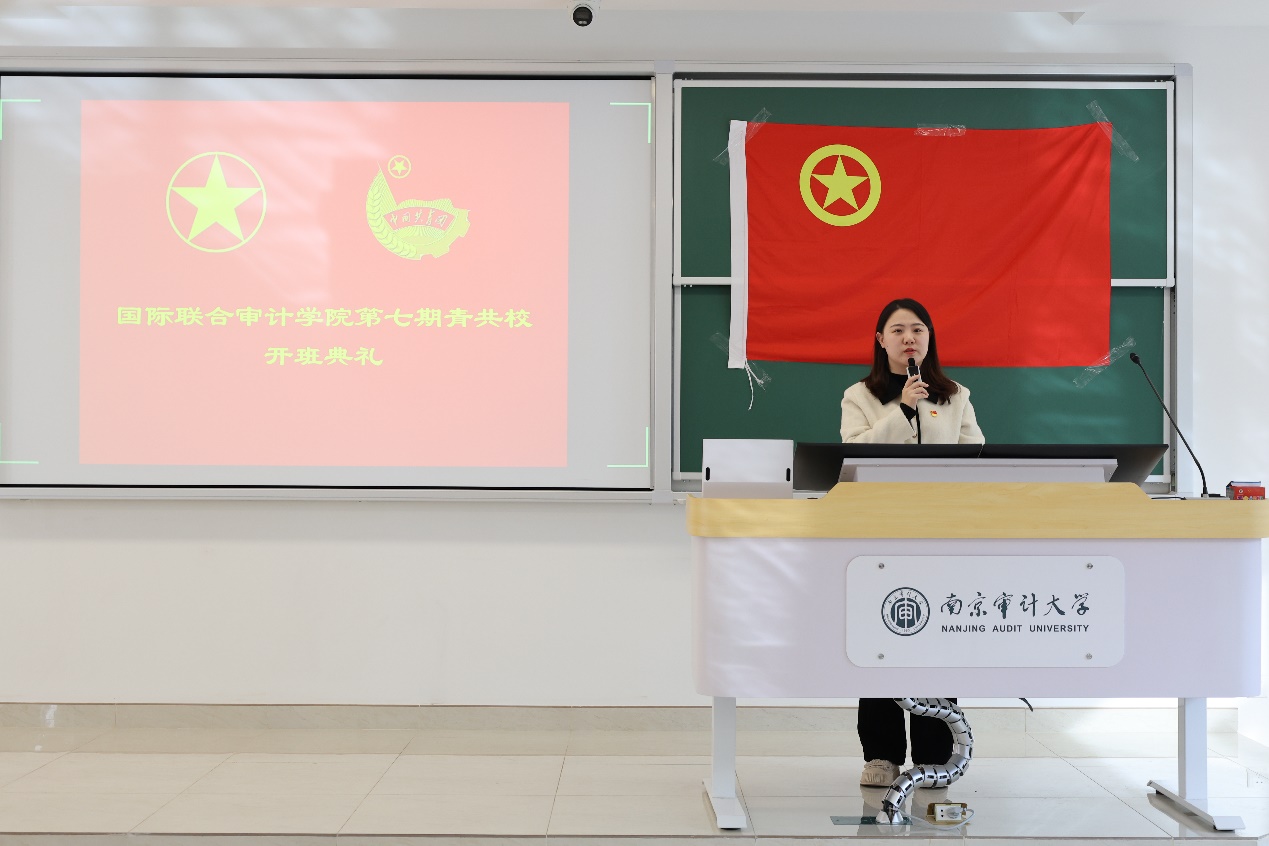 11月22日下午,国际学院第七期青共校开班典礼在UG环球360官方网站莫愁校区综合楼207教室举行。开班典礼由国际学院分团委副书记孙丝雨主持,第七期青共校全体学员、团校学员及部分学生干部出席参加。