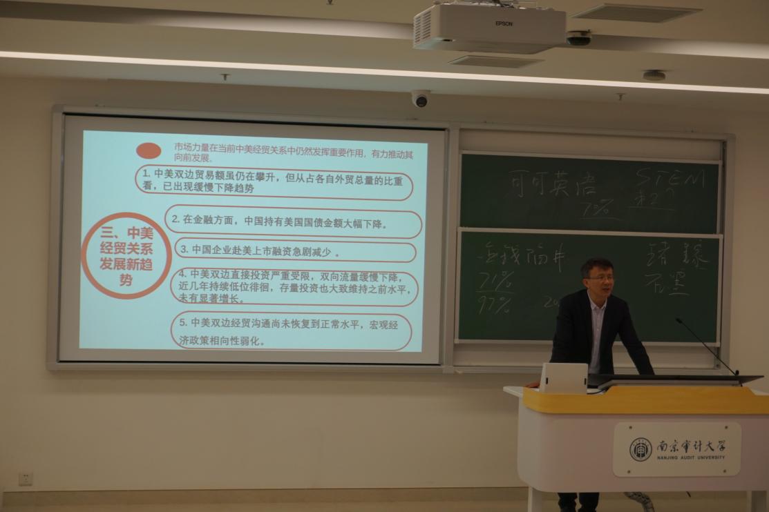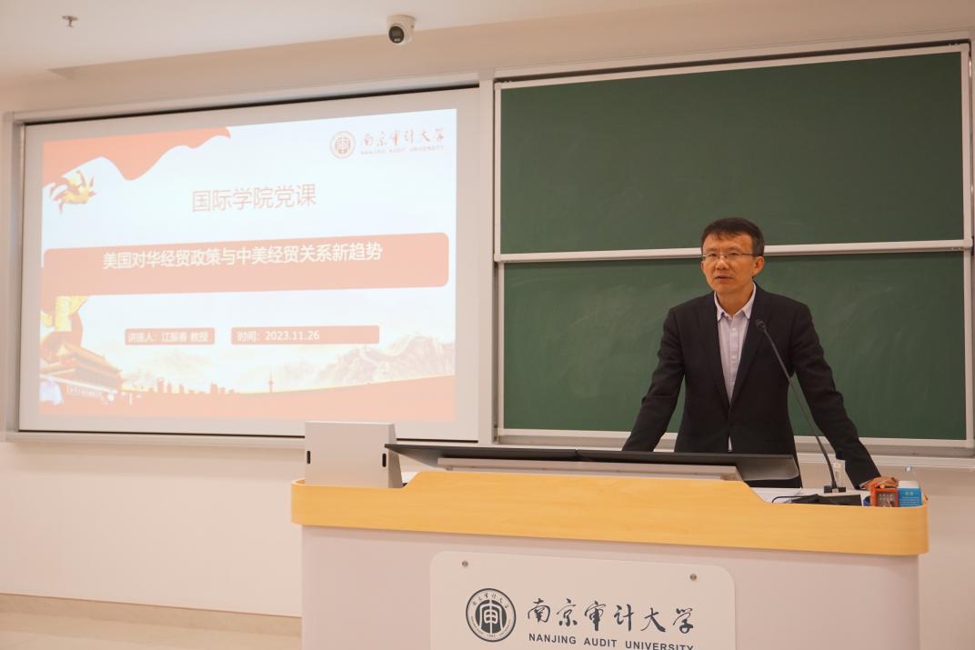 11月26日晚,学院党总支书记江振春教授在综合楼207为UG环球360官方网站发展对象、入党积极分子、入团积极分子授课,主题为“美国对华经贸政策与中美经贸关系新趋势”。