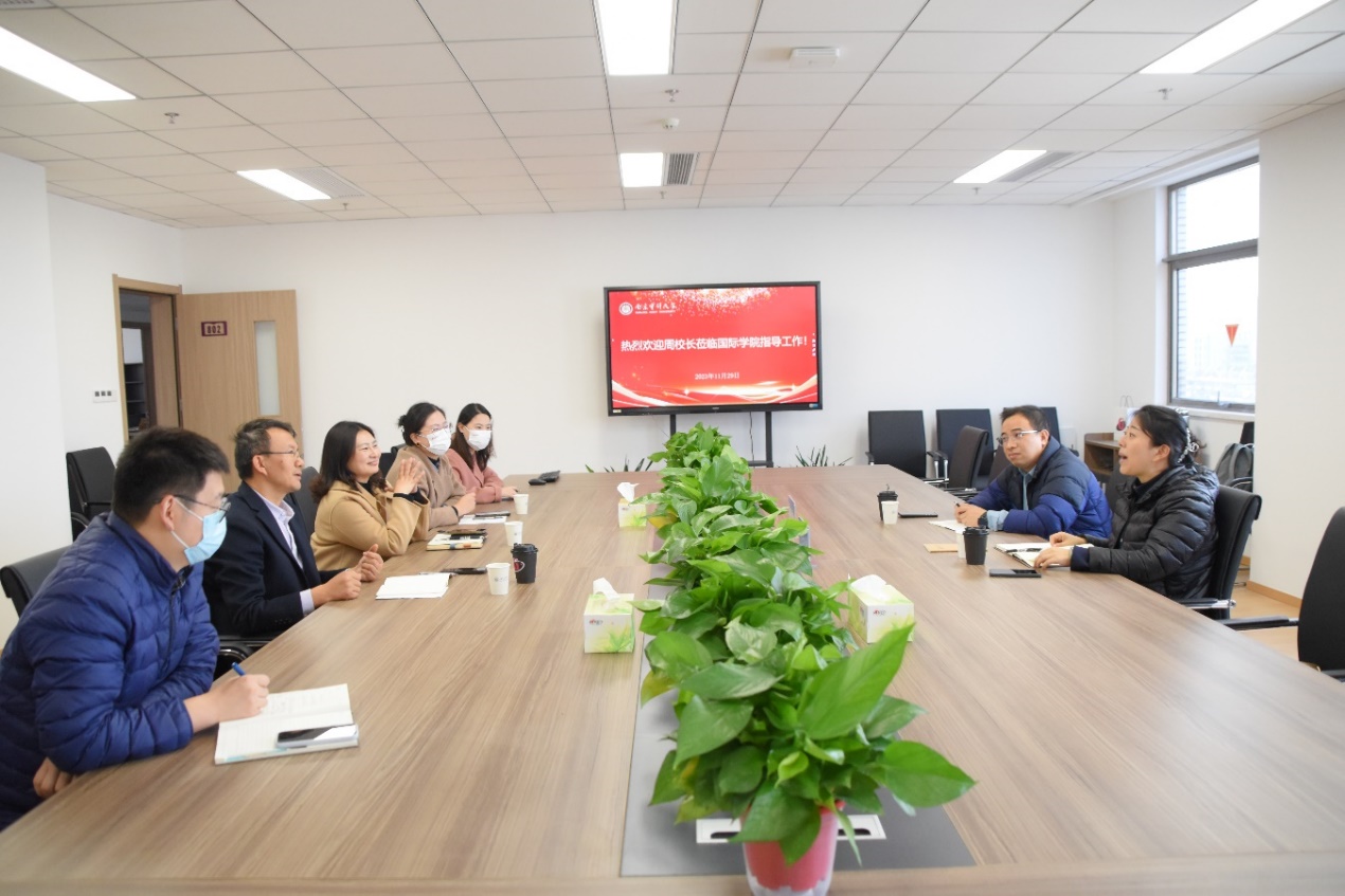 随后,周方舒一行来到国际学院会议室座谈,坚持问题导向,听取了班子成员、办公室和辅导员老师的汇报。谈到对未来国际学院学生工作新趋势,周校长提出三点要求: