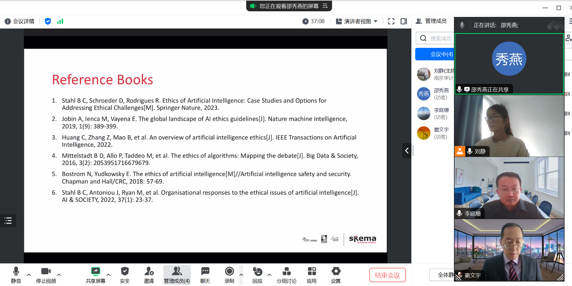 教学研讨过程中,各位老师结合自身实践经验,提出了翻转课堂、案例教学、实践教学等多样的教学形式,提供了慕课等丰富的教学资源,并且将自身研究经验和行业经历代入课程教学,提出了很多有趣的设想,并针对学生不同的专业背景和文化背景,设计了相应的教学模式。