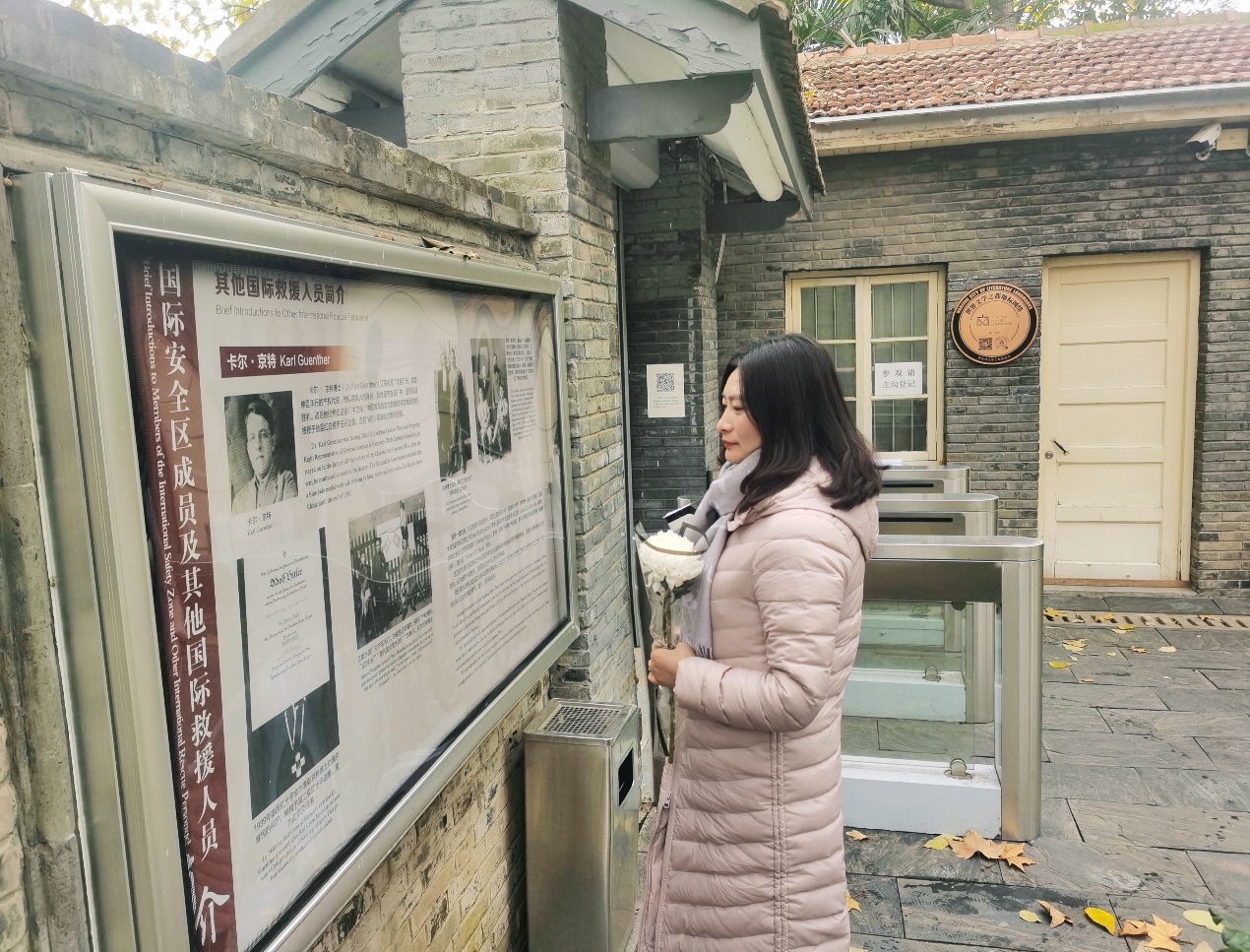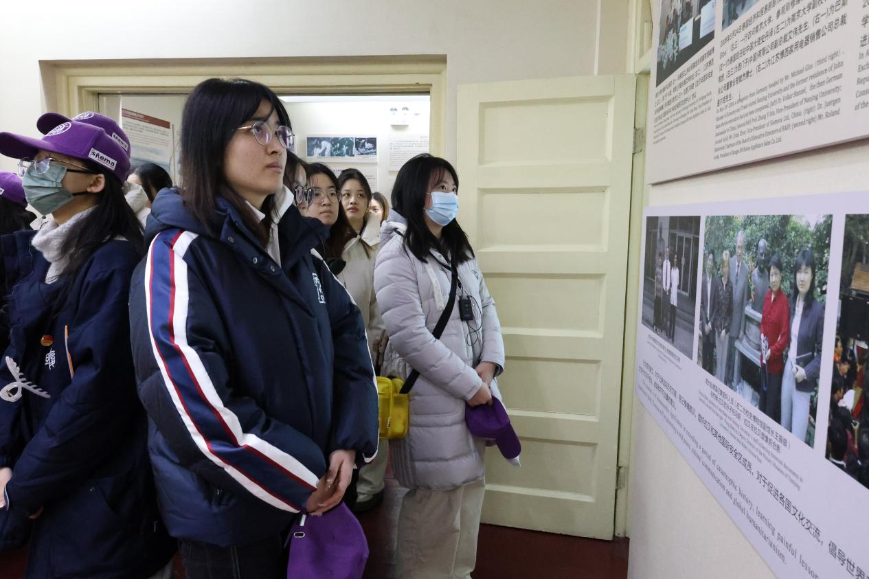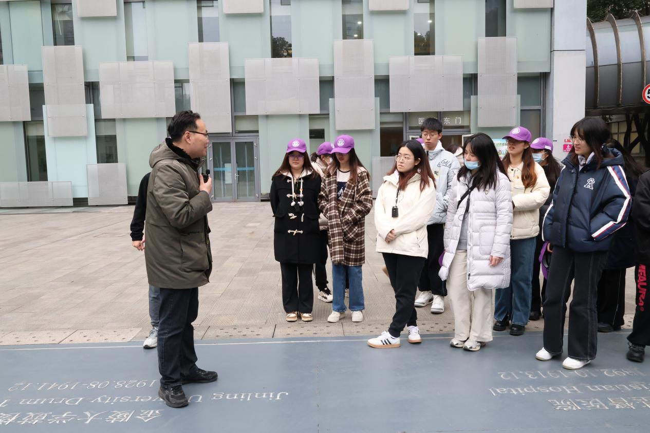 随后,卢博士带领大家前往南京鼓楼医院。鼓楼医院1892年建成,由加拿大籍传教士马林任院长。在风雨飘摇的1937年,当日军的铁蹄践踏着金陵大地,作为一家带有宗教背景的医院,鼓楼医院成为了南京沦陷后唯一一家有能力并有意愿为难民提供救助的医疗机构,挽救了数以万计的中国同胞,并为战后东京审判和南京审判留下了完整的证据。