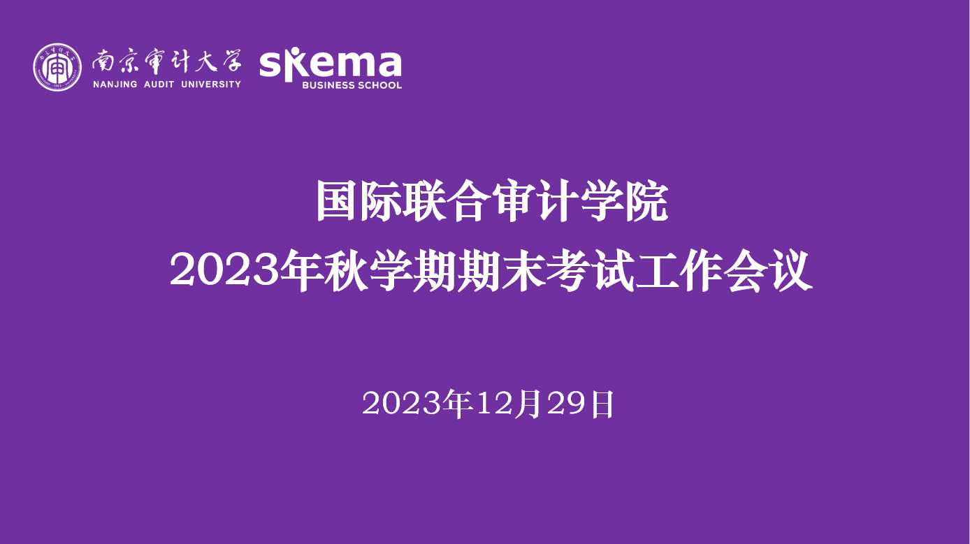 为加强考试管理,严肃考风考纪,国际联合审计学院于12月29日召开2023秋学期期末考试工作会议。副院长李庭燎,教务办主任刘莉,教务管理人员及六十余名任课教师参与本次会议。