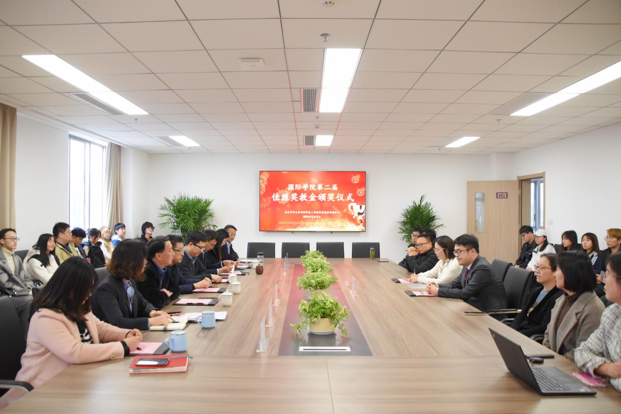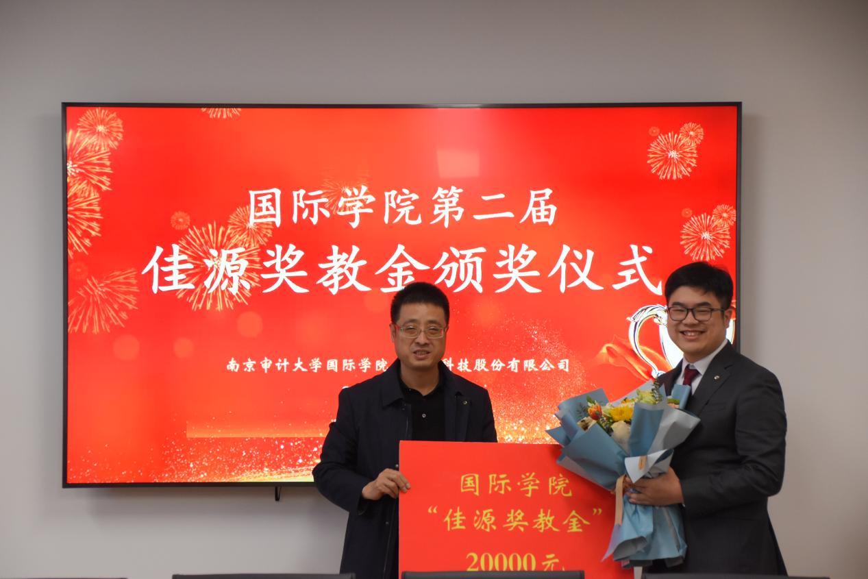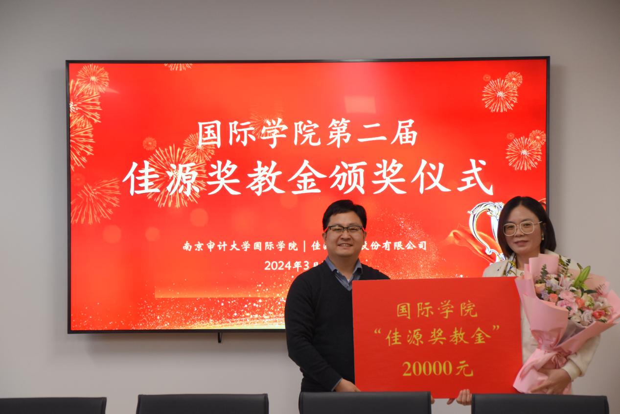 3月14日,大屏捐赠仪式暨第二届“佳源奖教金”颁奖仪式在莫愁校区举行,佳源科技股份有限公司副总经理兼首席人力资源官秦浩、党支部宣传委员璩梦瑶,UG环球360官方网站党委常委、副校长李乾文、国际学院原党总支书记姜德波教授以及学院全体领导班子出席,国际学院获奖教师和师生代表参加。仪式由学院副院长李庭燎主持。