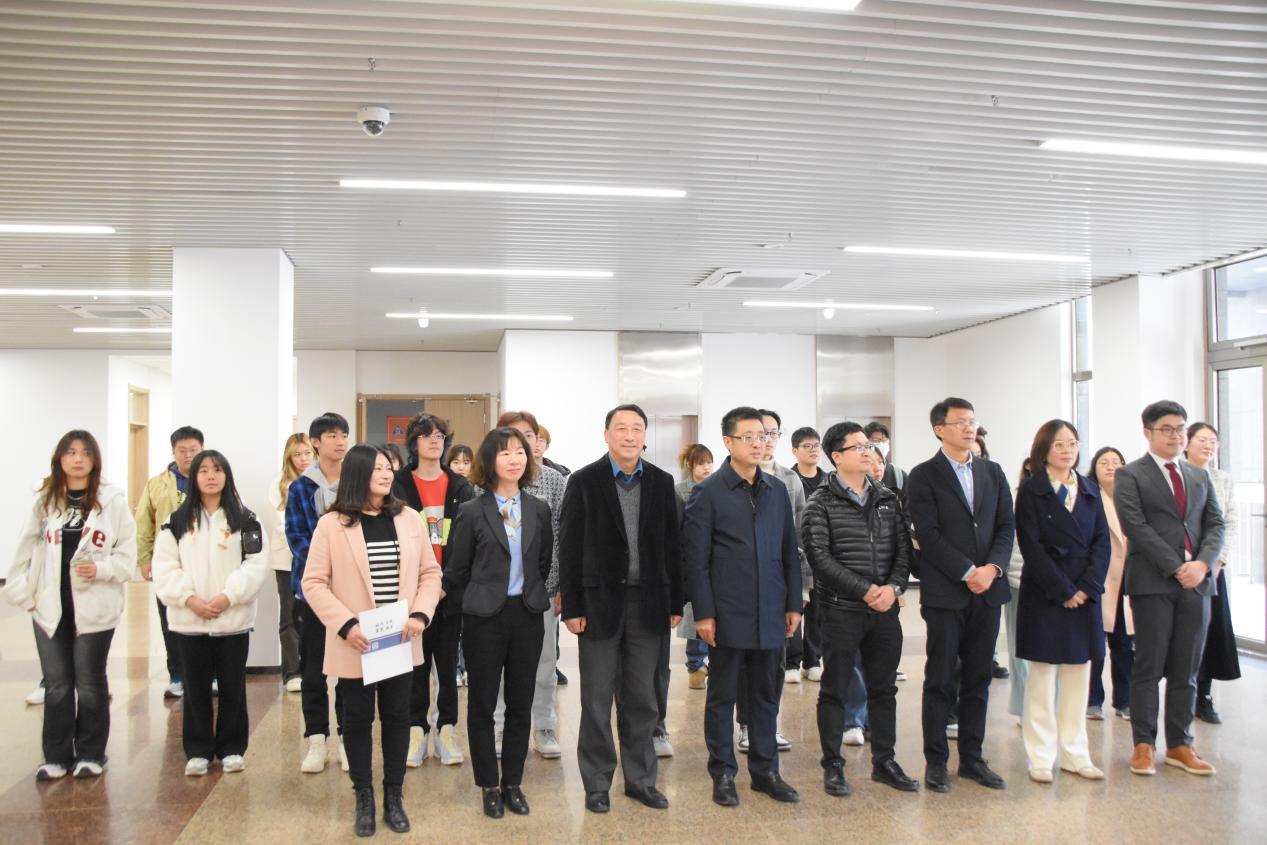随后,佳源科技股份有限公司副总经理兼首席人力资源官秦浩与UG环球360官方网站党委常委、副校长李乾文在综合楼一楼大厅进行大屏剪彩仪式,并与国际学院班子成员合影留念。