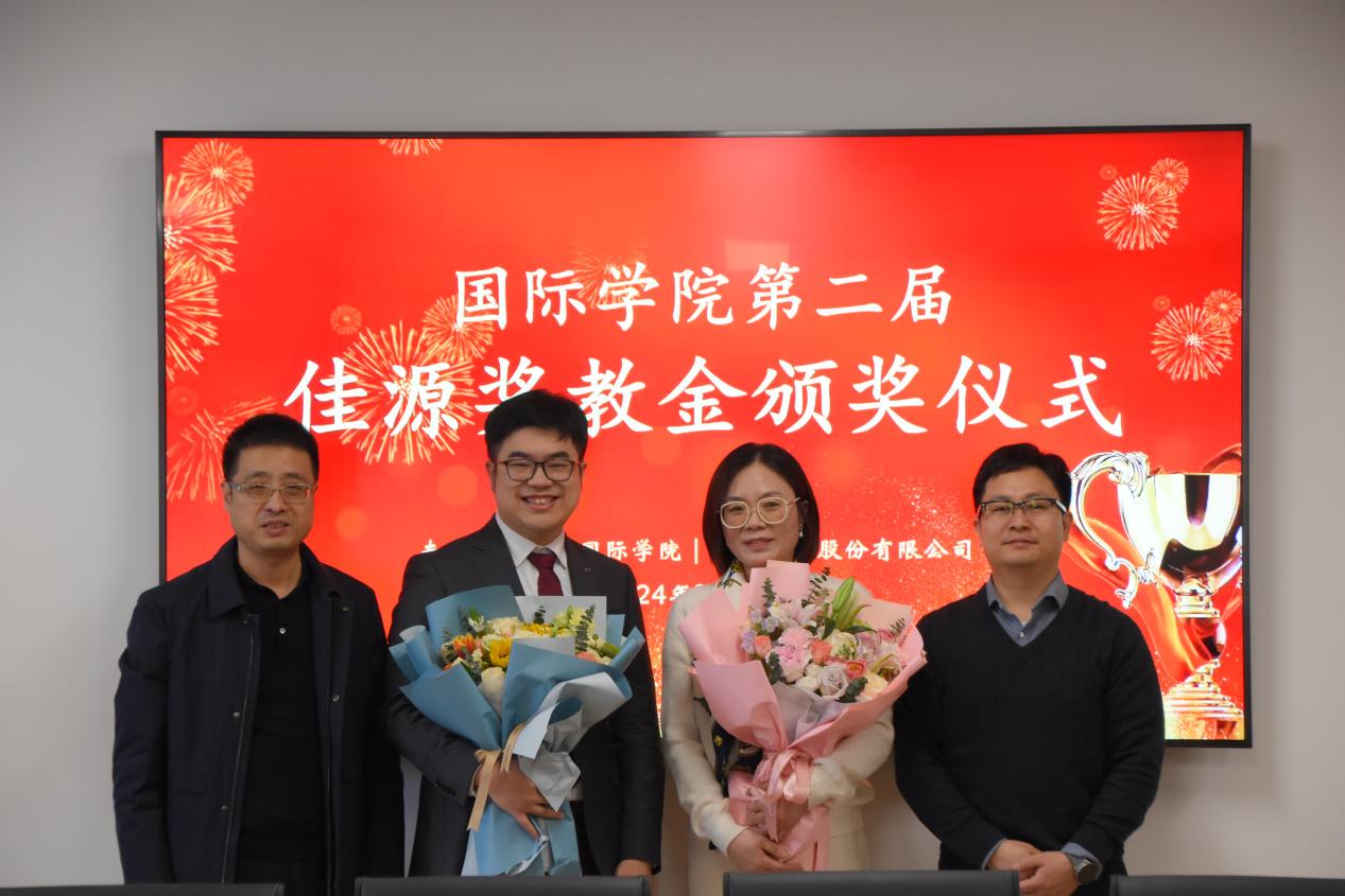 姜德波对获奖老师表示祝贺,并衷心祝愿他们未来在国际学院的教学事业中取得更为辉煌的成就。接着,他感谢佳源科技股份有限公司的慷慨支持,并赞扬其不仅具有商业实力,更承担起社会责任,展现出了卓越的企业胸怀。他期待着国际学院的师生们能够秉持这样的胸怀和使命感,共同努力,不断拓展学院的辉煌,将其打造成中外合作办学示范点,为学院更上一个台阶贡献自己的力量。