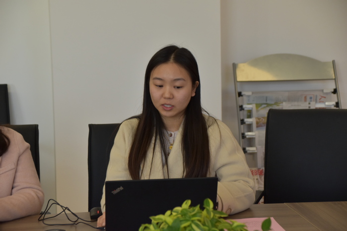 张莹玥老师介绍了学院“有声党课”师生共诵英文经典项目,该项目曾被“江苏教育发布”官微平台报道,获2023年度校最佳党日活动。张佳仪同学介绍了思政微电影《点亮审计之路》的创作成果,该项目获2023年校思政微电影大赛一等奖。