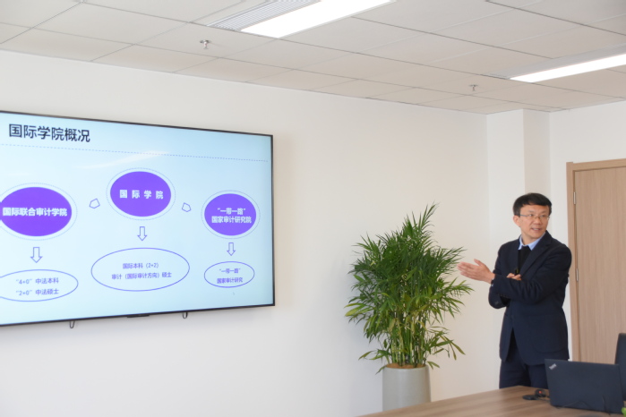 集思未来交叉学科创新设计联合研究中心副主任张国庆,从四个方面介绍了UG环球360官方网站与集思未来在国际审计人才培养方面的建设规划:一是引进优质国际学术资源,助力国际校区建设:打造UG环球360官方网站“国际审计人才培养”名片,提升影响力;二是助力学科建设,推进“审计+”绿色科技、数据科学、人工智能等多个学科交叉融合;三是引入国内外优质教育资源,提升学生国际化视野和国际胜任能力;四是通过海外交流赋能学校国际化水平和优势学科师资队伍建设。
