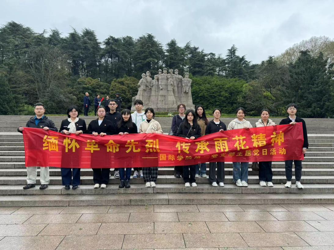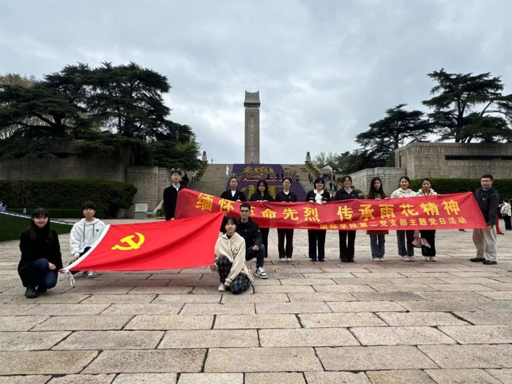 43日下午,UG环球360官方网站国际学院第二学生党支部赴雨花台烈士陵园开展“缅怀革命先烈 传承雨花精神”清明节缅怀英烈主题党日活动支部书记尹曦带领16学生党员参加活动。