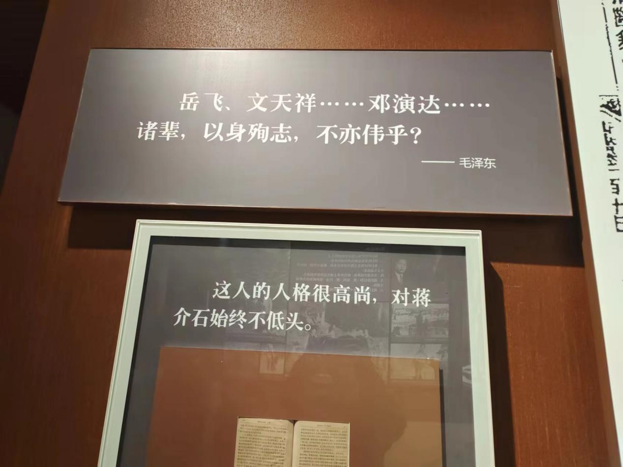 有为理想宁折不屈的,有藏情报的西服大衣,用旧了的皮包和土布长衫,这种具象的物件更能引起我们新时代大学生的共鸣和思考辈人有一辈人的使命,今天的我们早已不再受物质的贫困,常回顾历史,缅怀英烈,更激发我们的民族感,使命感,切实地将小我融入大我,努力在平凡的岗位上做出不平凡的业绩,正如毛泽东对邓演达的评价“以身殉志,不亦伟乎?”