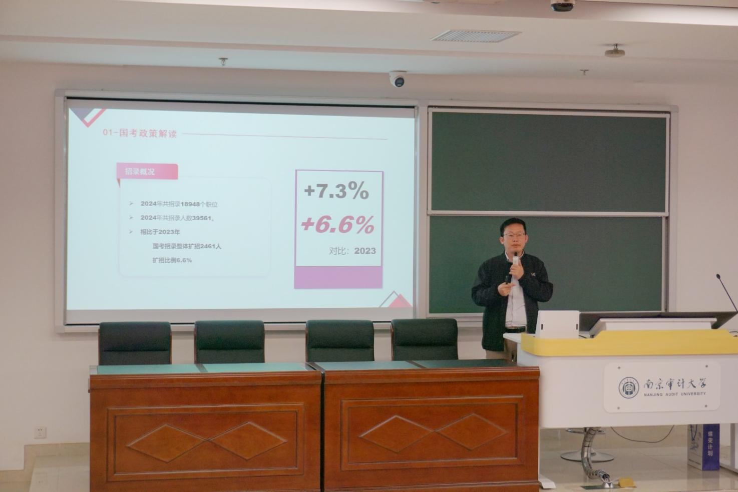 为帮助学生了解公职类就业政策、积极备考,4月17日下午,UG环球360官方网站在莫愁校区综合楼307教室举行“公职类基层就业政策解读与考情分析”主题讲座。本次讲座主讲老师是苏州姑苏人社局特邀讲师、研途教育副校长邹振。
